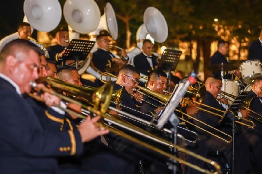 Éxitos como La Bikina, Eye of tiger y Mamma mia han son interpretados por los elementos de la sinfónica de la Fuerza Armada.