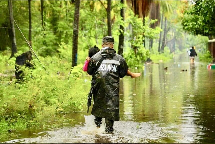 Efectivos de la Fuerza Armada siguen trabajando durante las lluvias que afectan al país por el paso de la Tormenta Tropical Pilar, con remoción de árboles, de lodo, rocas, rescate de personas, seguridad en albergues y llevando ayuda a las personas albergadas. Además, de continuar con labores de seguridad a nivel nacional.