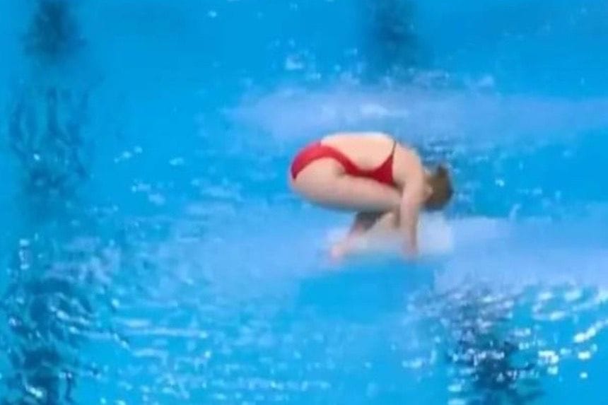 Fue durante su primer clavado en donde Alison Gibson golpeó la orilla del trampolín cuando realizaba una de las vueltas durante su ejecución, lo que provocó que el golpe la desestabilizara y cayera de manera descompuesta al agua, sin poder lograr terminar el clavado correctamente.