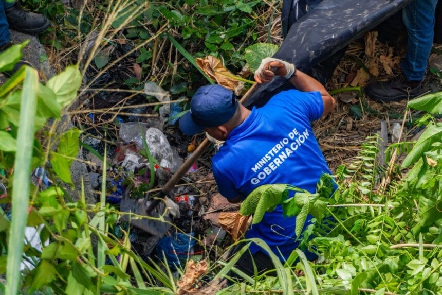 Gestores territoriales del Ministerio de Gobernación junto Equipo Táctico Operativo de Protección Civil, realizan laborales de limpieza en la quebrada de la comunidad San Roque, San Salvador, como parte de la #JornadaDeMitigación de Riesgos que el Gobierno ejecuta a nivel nacional.