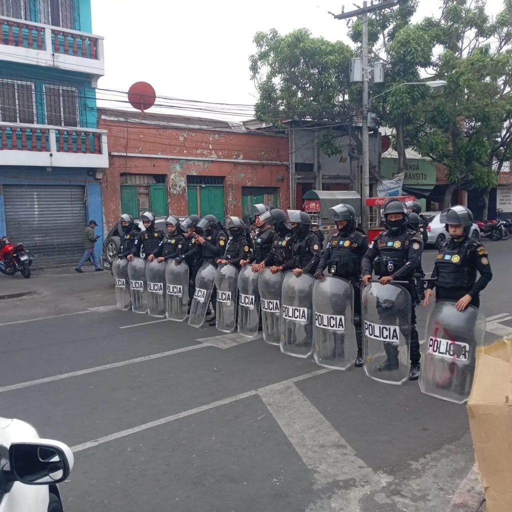 Las autoridades locales colocaron policías antimotines en la 18 calle y 10 avenida, zona 1 de la ciudad de Guatemala a eso de las 8am.