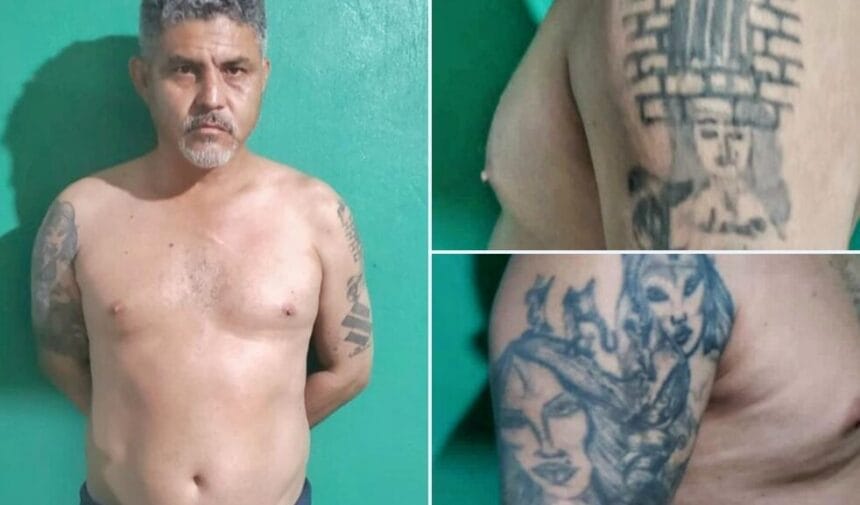 Posee tatuajes alusivos a su pandilla, aunque intentó ocultar los que se hizo en los brazos.