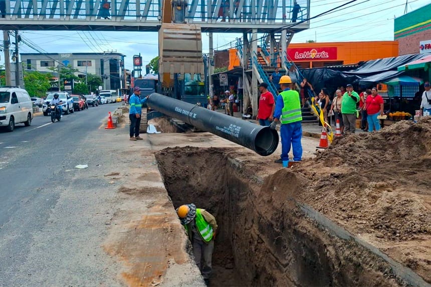 La Administración Nacional de Acueductos y Alcantarillados (ANDA) informó sobre el avance en la instalación de nueva tubería en el bulevar San Bartolo, como parte del proyecto de la Planta Potabilizadora de Ilopango.