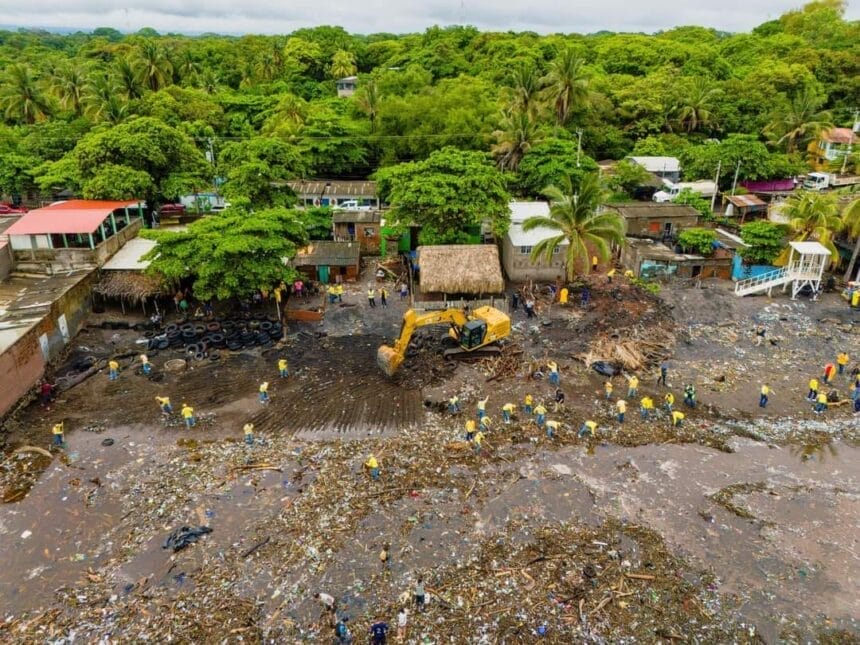Los trabajos de remoción de residuos en Acajutla, Sonsonate, continúan. Son toneladas las que se están sacando de las playas. Tras el paso de las lluvias ha quedado en evidencia la suciedad.