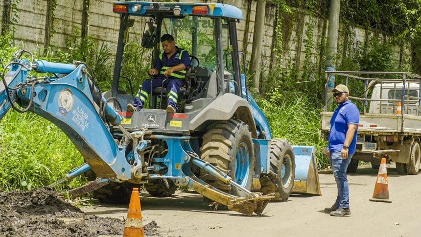 Equipos de primera respuesta con apoyo de maquinaria propia de la alcaldía de Santa Ana Centro realizaron limpieza en zonas como colonia Nueva Ilamatepec.