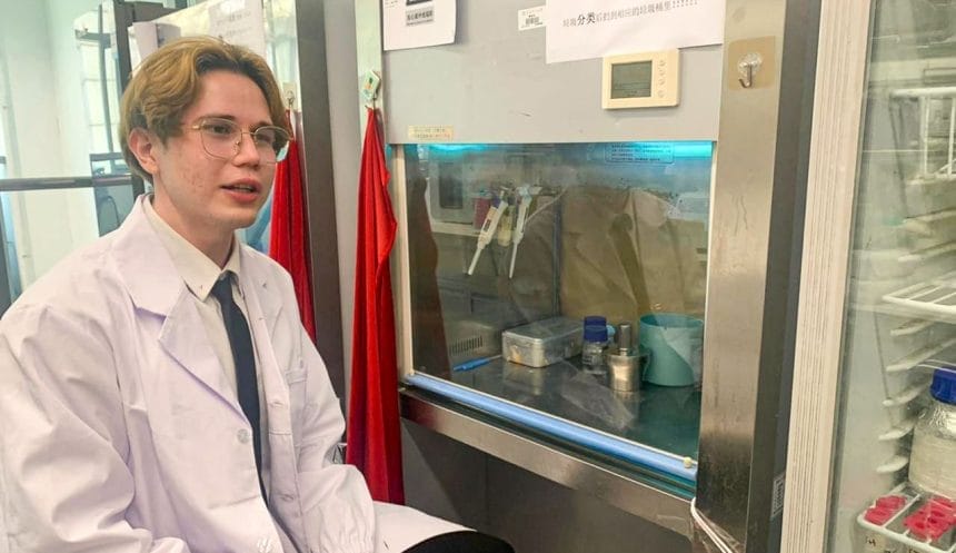 De acuerdo con el joven, trabaja junto a un grupo conformado por más de 20 estudiantes, de los cuales la mayoría son chinos, pues solo él y otro alumnos son extranjeros. Actualmente, desarrollan un estudio con el que buscan crear una enzima capaz de degradar el plástico en ambientes marinos.