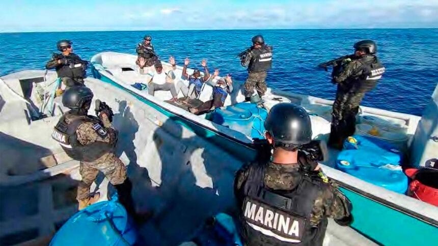 Menos de cinco días después de otra gran incautación de droga, nuestra Marina Nacional interceptó otra lancha a 882 millas náuticas (1,633 kilómetros) al suroeste de la Bocana El Cordoncillo, Estero de Jaltepeque, con 2 tripulantes de nacionalidad ecuatoriana.
