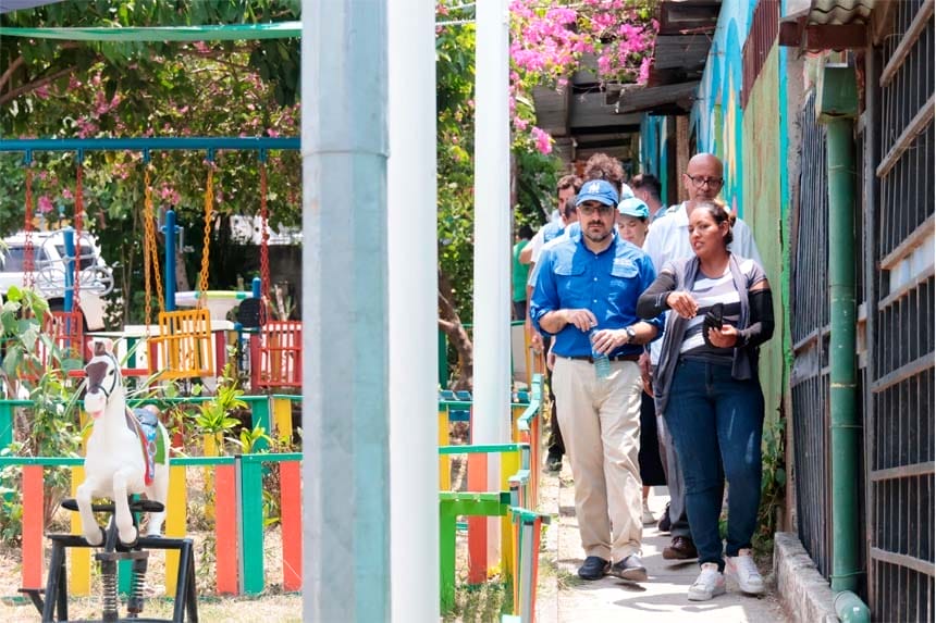 Durante el recorrido, conocieron de primera mano el trabajo articulado entre el Gobierno salvadoreño, a través del Ministerio de Vivienda, el Ministerio de Seguridad y la Alcaldía de San Salvador Este, en conjunto con líderes locales y el respaldo de organismos internacionales.