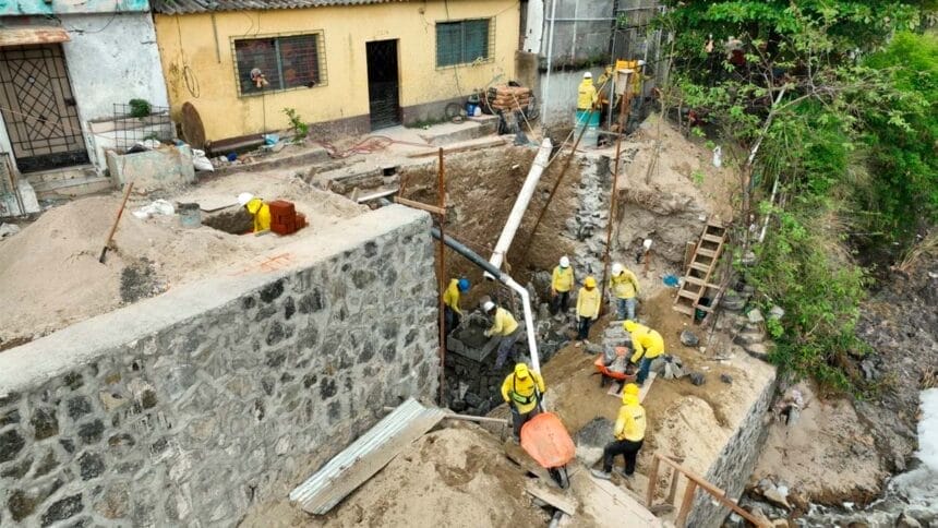 El Ministerio de Obras Públicas (MOP) continúa realizando labores de mitigación de riesgo en un sector de la colonia El Bosque, en San Salvador, como parte del Plan Nacional de Mitigación 2024.