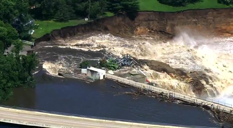Los medios locales estadounidenses, dieron a conocer que las inundaciones tras las lluvias que se dieron en Minnesota son tan intensas, que una de sus presas está a punto de colapsar completamente por una falla estructural. Debido a la gran cantidad de agua, el río ha erosionado la tierra alrededor de la presa, provocando que se debilite.