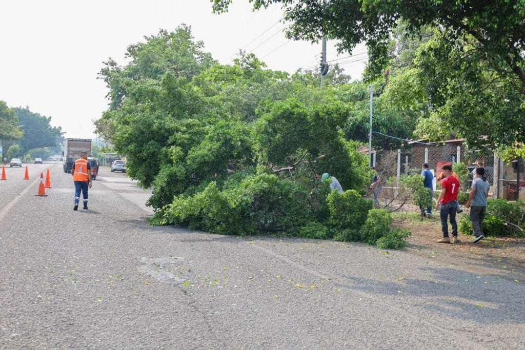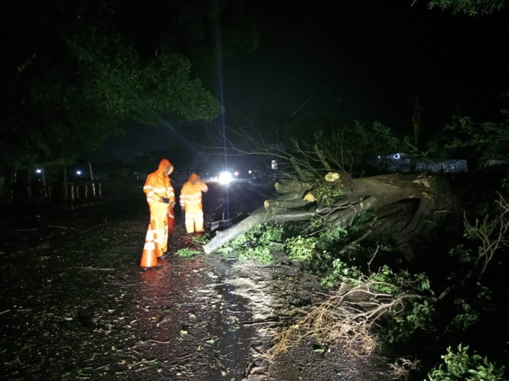 Además, otro equipo del Fondo de Conservación Vial de El Salvador (FOVIAL), brindó asistencia ante una emergencia reportada en la que un árbol caído de mediana magnitud cayó debido a los vientos sobre la carretera entre el desvío de Atiquizaya y el baipás de Ahuachapán.