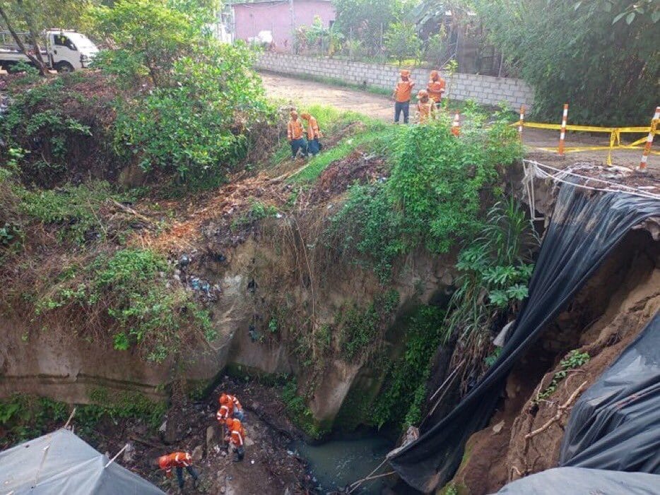 Durante la tarde, personal de FOVIAL realizó obras de mitigación de una cárcava a un costado de la carretera entre Santa Ana y el desvío de Atiquizaya con el fin de evitar esta se extienda y cause el hundimiento de la calle.
