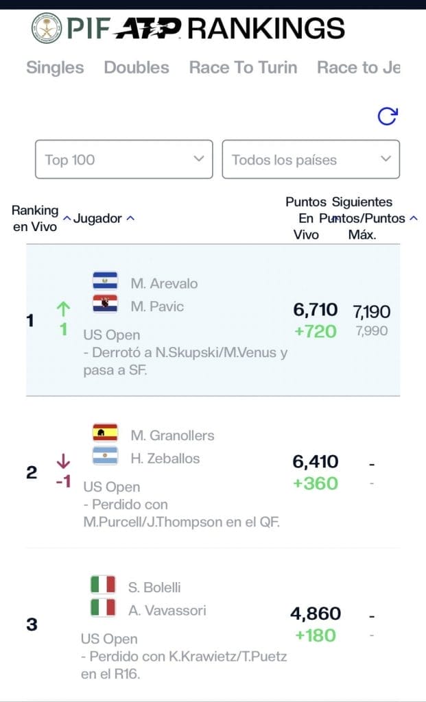 El salvadoreño Marcelo Arévalo junto a su dupla Mate Pavic, fueron catalogados como la mejor pareja del mundo en el tenis en 2024 según el ranking del ATP “dobles race”, luego de que culminó su participación en el US Open. Arévalo se preparará para disputar la Copa Davis y será la máxima figura del país como el mejor rankeado en la competencia que se disputará en Bulgaria.