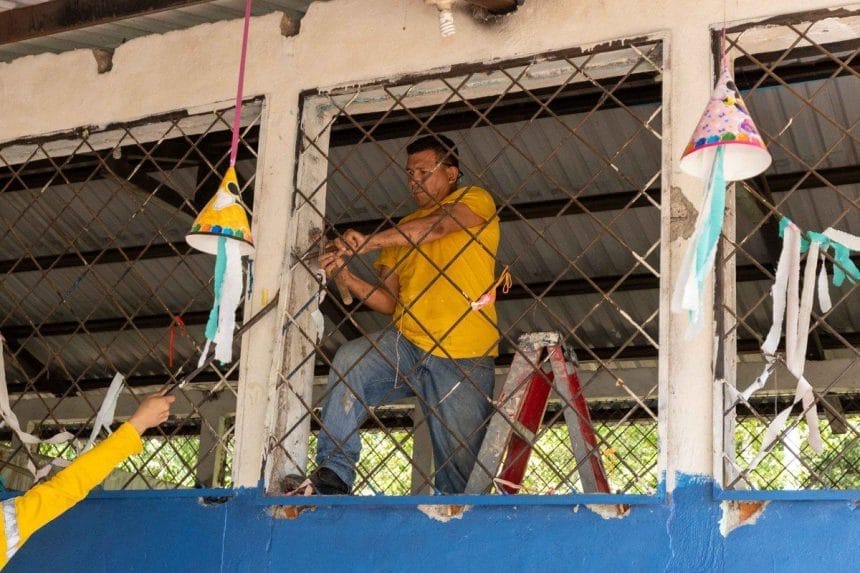 La intervención número 303 del programa #DosEscuelasXDía avanza en el municipio de San Matías, en el departamento de La Libertad Centro, donde se lleva a cabo la transformación del Centro Escolar Cantón Masajapa.