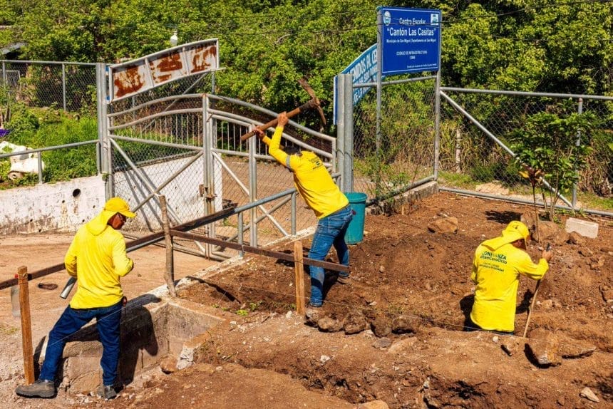 En el municipio de San Miguel Centro se ejecutan las intervenciones 67 y 68 del programa #DosEscuelasXDía, una iniciativa que busca garantizar espacios dignos para la formación académica de la niñez salvadoreña.