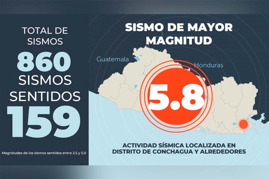 El Distrito de Conchagua y sus alrededores han experimentado una intensa actividad sísmica recientemente, con un total de 860 sismos registrados, de los cuales 159 han sido sentidos por la población.