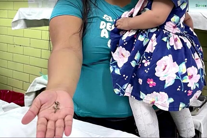 Una infante de 10 meses se tragó un crucifijo por accidente, en Perú.