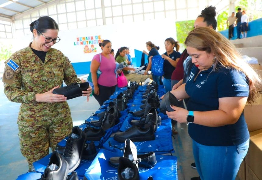 La ministra de Educación, Karla Trigueros, se hizo presente en el centro escolar para verificar la jornada de ajuste y cambio de tallas de uniformes y zapatos, con el objetivo de garantizar condiciones óptimas para el aprendizaje de los alumnos.