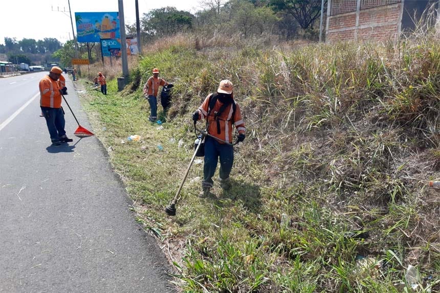 En Cabañas, cuadrillas del Fondo de Conservación Vial (FOVIAL) ejecutaron la limpieza de drenajes y cunetas en la calle que conduce hacia Ilobasco. Simultáneamente, en el occidente del país, se llevó a cabo chapeo y limpieza de cunetas en el desvío hacia Armenia, departamento de Sonsonate.