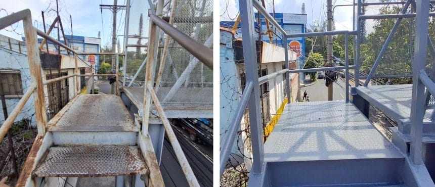 La Alcaldía de San Salvador Centro informó que, en coordinación con la empresa privada encargada del mantenimiento, ejecutó la reparación de la pasarela ubicada sobre la décima avenida Sur, en el Barrio San Jacinto, a un costado de un reconocido centro comercial del sector.
