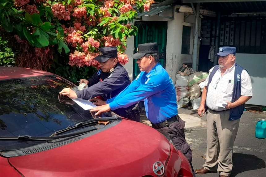 En el marco del Plan San Salvador Centro Ordenado y Seguro, la Alcaldía de San Salvador Centro, a través del Cuerpo de Agentes Metropolitanos (CAM) y en coordinación con la Policía Nacional Civil (PNC), llevó a cabo una jornada de notificaciones a propietarios de vehículos en estado de abandono.