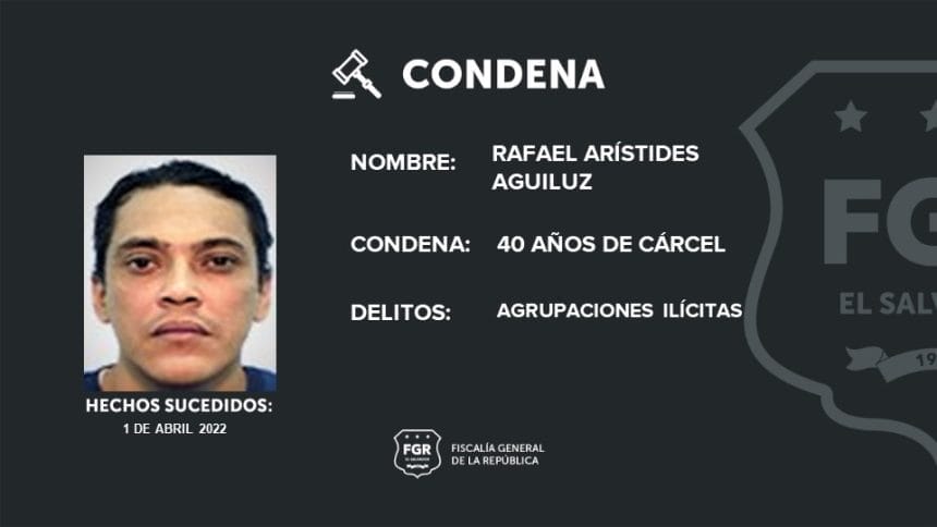 La Fiscalía General de la República (FGR), logró una condena de 40 años de cárcel para un pandillero de la Tribu San Martín del Barrio 18, llamado Rafael Aguiluz.