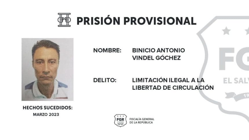 Un hombre identificado como Binicio Antonio Vindel Góchez ha sido enviado a juicio acusado de limitación ilegal a la liberta de circulación, informó la Fiscalía General de la República (FGR).