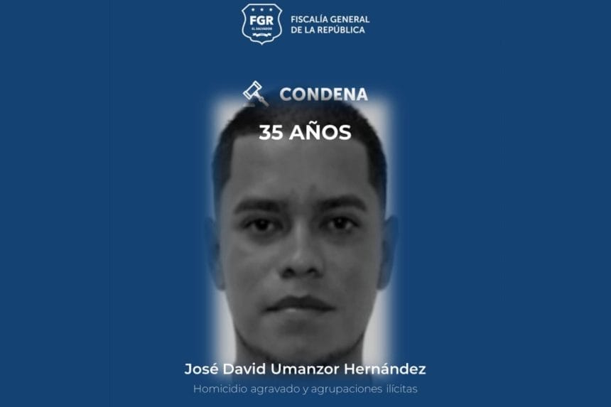 La Fiscalía General de la República (FGR) informó que José David Umanzor Hernández fue condenado a 35 años de prisión por participar en el homicidio agravado de un hombre, ocurrido en 2011.
