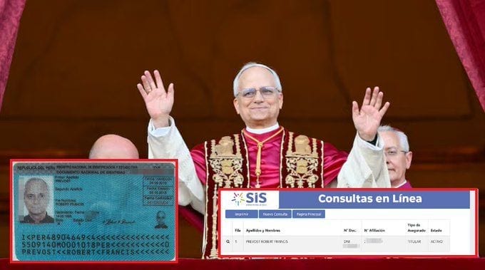 El recién proclamado León XIV, cuyo nombre civil es Robert Prevost Martínez, no solo nació en Chicago, Estados Unidos, sino que también posee documento nacional de identidad (DNI) peruano y está registrado en el Sistema Integral de Salud (SIS) del Perú.