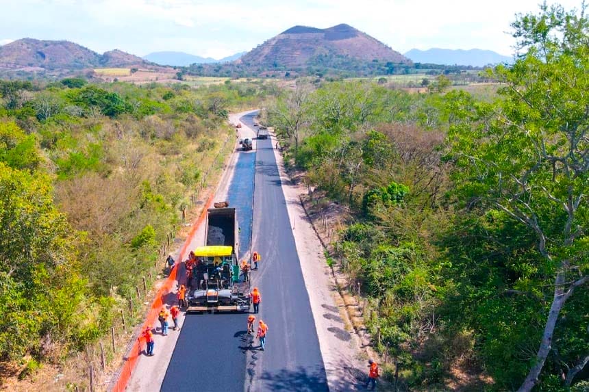 Las autoridades continúan con los trabajos de pavimentación en la carretera que conecta el cantón El Coco con la frontera de Guatemala, una ruta clave para el comercio y el turismo entre dicho país y El Salvador.