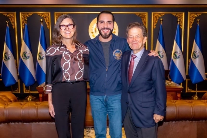 Cathie Wood, fundadora y CEO de ARK Invest, sostuvo una reunión con el Presidente Nayib Bukele, la gestora de activos que lanzó este año uno de los ETF de bitcoin que se cotizan en la bolsa de EE. UU. y que es una de las principales inversionistas de Tesla, afirmó el presidente Nayib Bukele podría multiplicar por 10 el Producto Interno Bruto (PIB) de El Salvador Salvador en su segundo mandato.