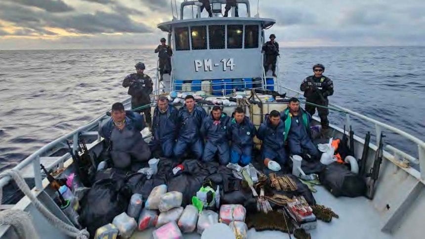 La Fuerza de Tarea Naval Tridente intervino las tres embarcaciones cuando estos sujetos intentaban traficar 1.2 toneladas de cocaína valorada en 30 millones de dólares, armas de fuego y municiones.