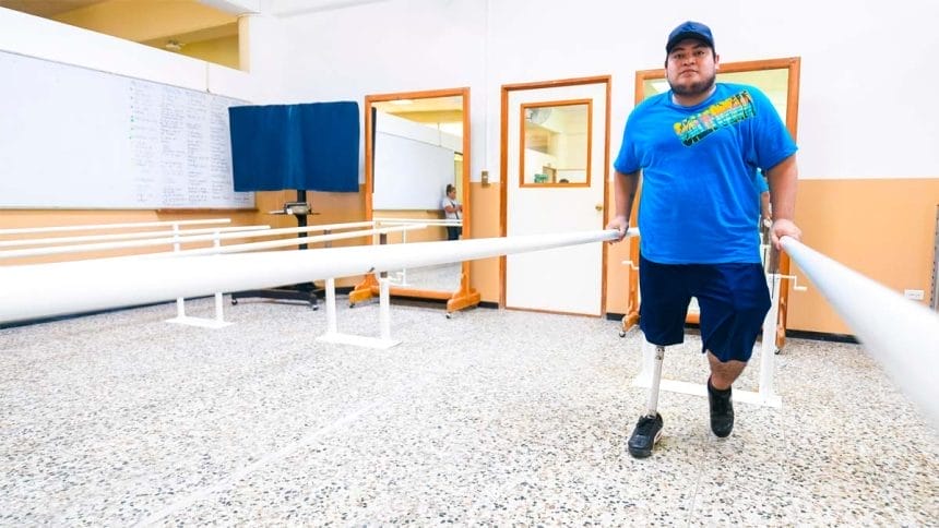 También explicó que el proceso inicia en la medición, el acompañamiento a los pacientes hasta la construcción y pruebas de la prótesis o de la órtesis que se realiza. Estos aparatos son elaborados al 100 % por los estudiantes de la Universidad Don Bosco, acompañados de los maestros y de los diferentes técnicos contratados por el Fonat y de esa casa de estudios superiores.