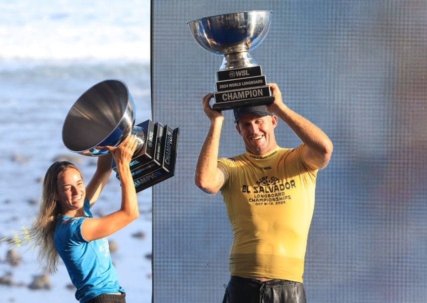 Rachael Tilly y Taylor Jensen se coronaron como campeones del mundo al triunfar en la última parada longboard del 2024 de la WSL en Surf City, El Salvador.