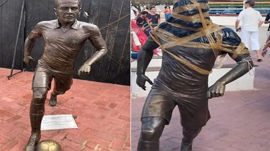 Antes de que la municipalidad finalmente aceptara retirarla, la estatua fue blanco de protestas y actos de vandalismo de movimientos ciudadanos y de grupos de defensa de los derechos de la mujer por homenajear a un futbolista condenado por violación.