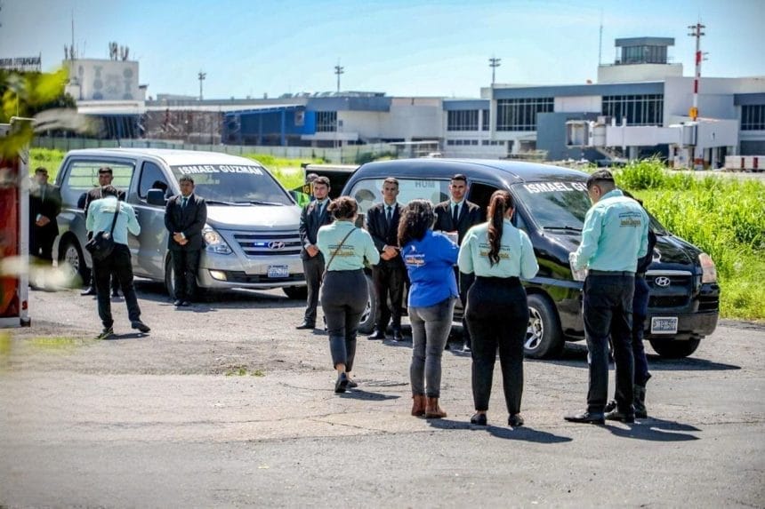 Funerales y Capillas Ismael Guzmán, trasladaron a los cuatro cuerpos de compatriotas salvadoreños que sufrieron una mortal tragedia en California, Estados Unidos; desde el aeropuerto internacional San Óscar Arnulfo Romero y Galdámez hacia San Cayetano, Istepeque, San Vicente.