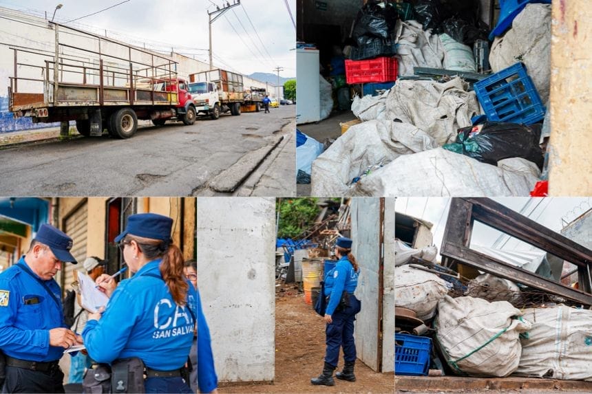Agentes del CAM verificaron que estos negocios de compra y venta de materiales reciclables cuenten con los permisos de operación extendidos por la Delegación Distrital 6, luego de cumplir con los requisitos solicitados por la (OPAMSS).