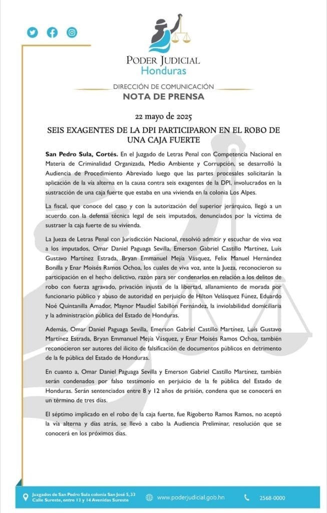 Reading: SEIS EXAGENTES HONDUREÑOS CONFIESAN ROBO DE CAJA FUERTE CON 13 MILLONES DE LEMPIRAS