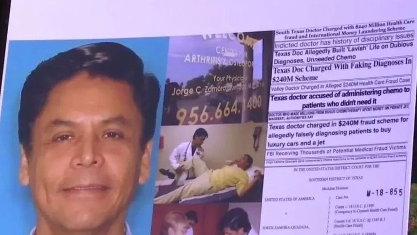 Las autoridades afirman que el reumatólogo Jorge Zamora-Quezada, de 68 años y residente de Mission, Texas, estuvo involucrado en reclamos falsos por valor de $118 millones y pagos de seguros por más de $28 millones.