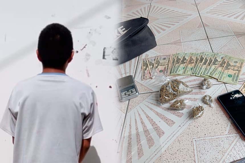 El menor fue sorprendido con cinco porciones de marihuana, una báscula digital, un teléfono móvil y $400 en efectivo.