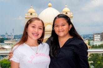 Las adolescentes salvadoreñas Stephanie Fuentes y Kamila Pérez, integrantes del Consejo Consultivo…