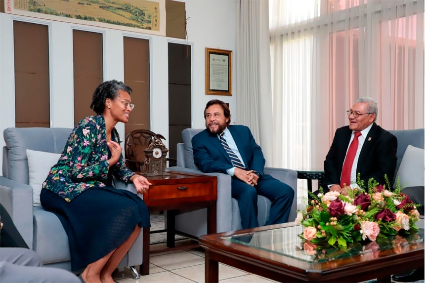 El Vicepresidente Félix Ulloa, recibió este jueves 24 de julio, a la Directora Regional para América de la Federación Internacional de la Cruz Roja y de la Media Luna Roja, Loyce Pace, acompañada de delegados del Comité Internacional y de la Cruz Roja Salvadoreña, con el objetivo de fortalecer los lazos de cooperación en beneficio del pueblo salvadoreño.